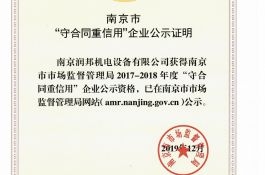 2020年2月26日,接到南京市企業(yè)信用管理協(xié)會(huì)通知,南京潤(rùn)邦機(jī)電設(shè)備有限公司再次通過2017-2018年度市級(jí)“守合同重信用”企業(yè)的認(rèn)定。誠(chéng)信潤(rùn)邦,傾心服務(wù)。